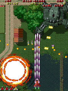 Unlike Raiden in which players are forced to restart stage from predefined checkpoint after player's defeat, Raiden II and onwards will allowed players to continue from last point of death.